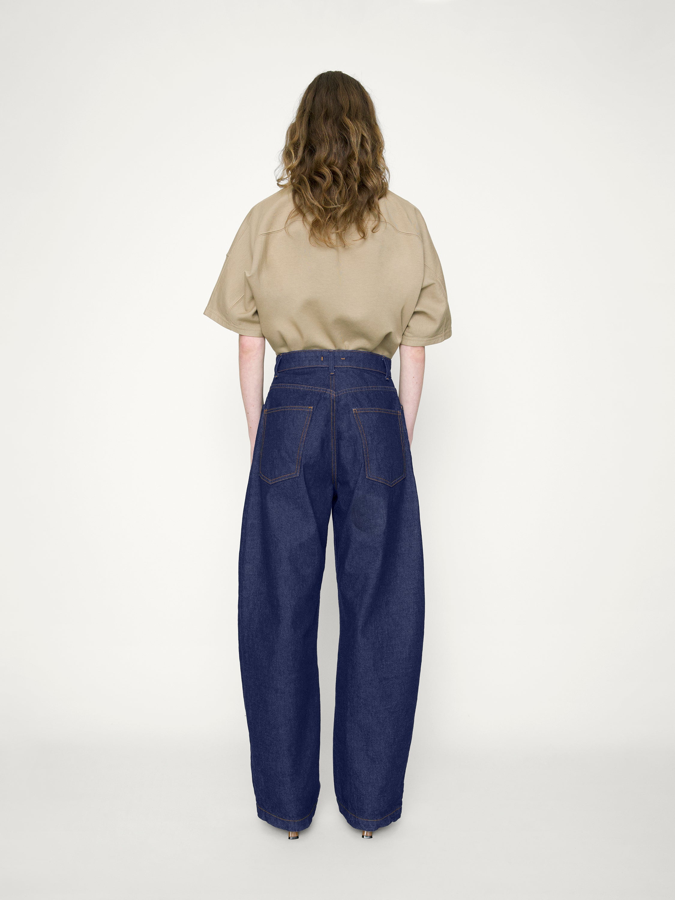 A mid-rise, curved wide-leg jean. Combining the ease of a wide leg trouser, with a sculpted leg that arcs gently from hip to hem. Designed to break in gently, softening with every wear.