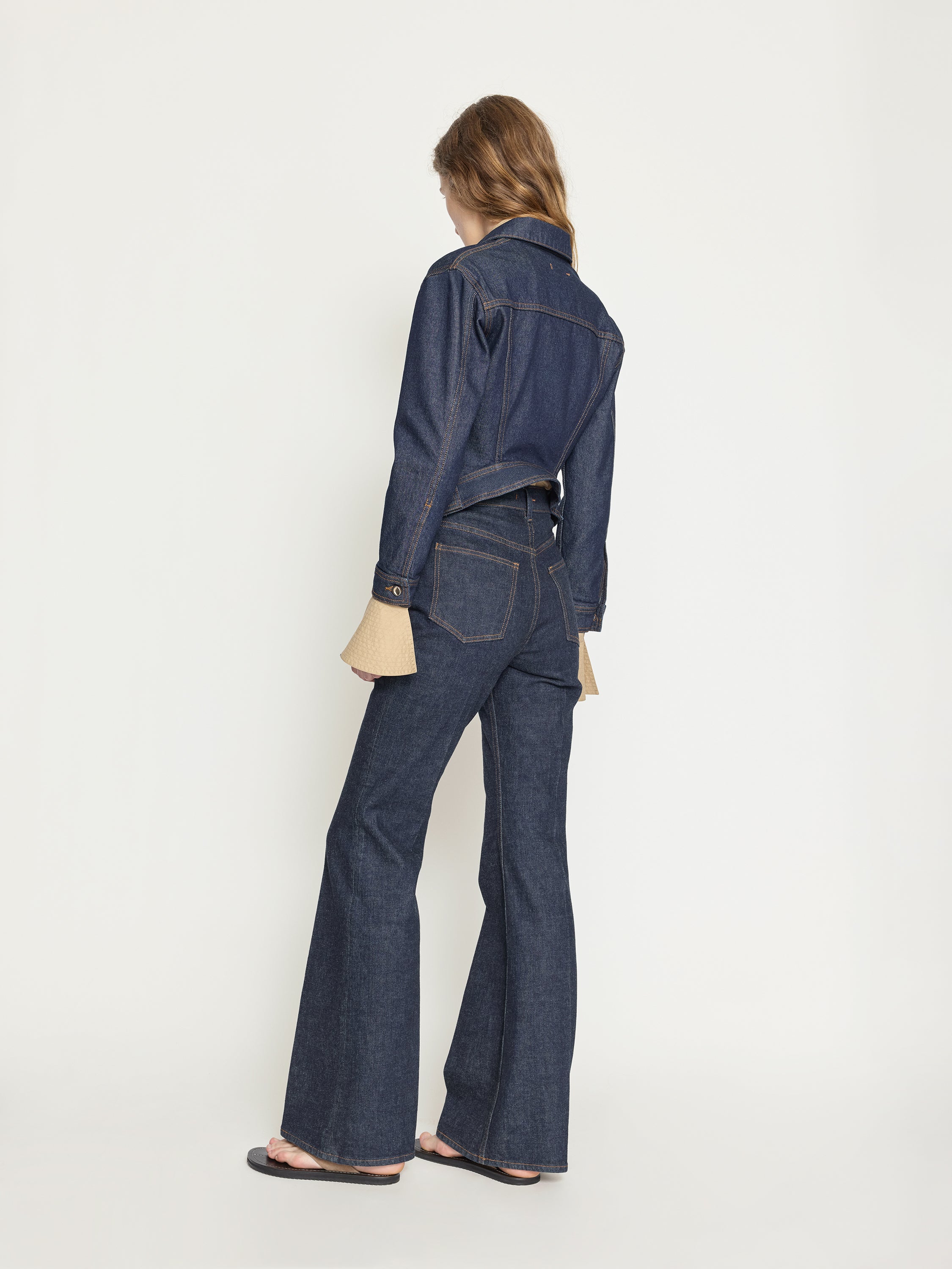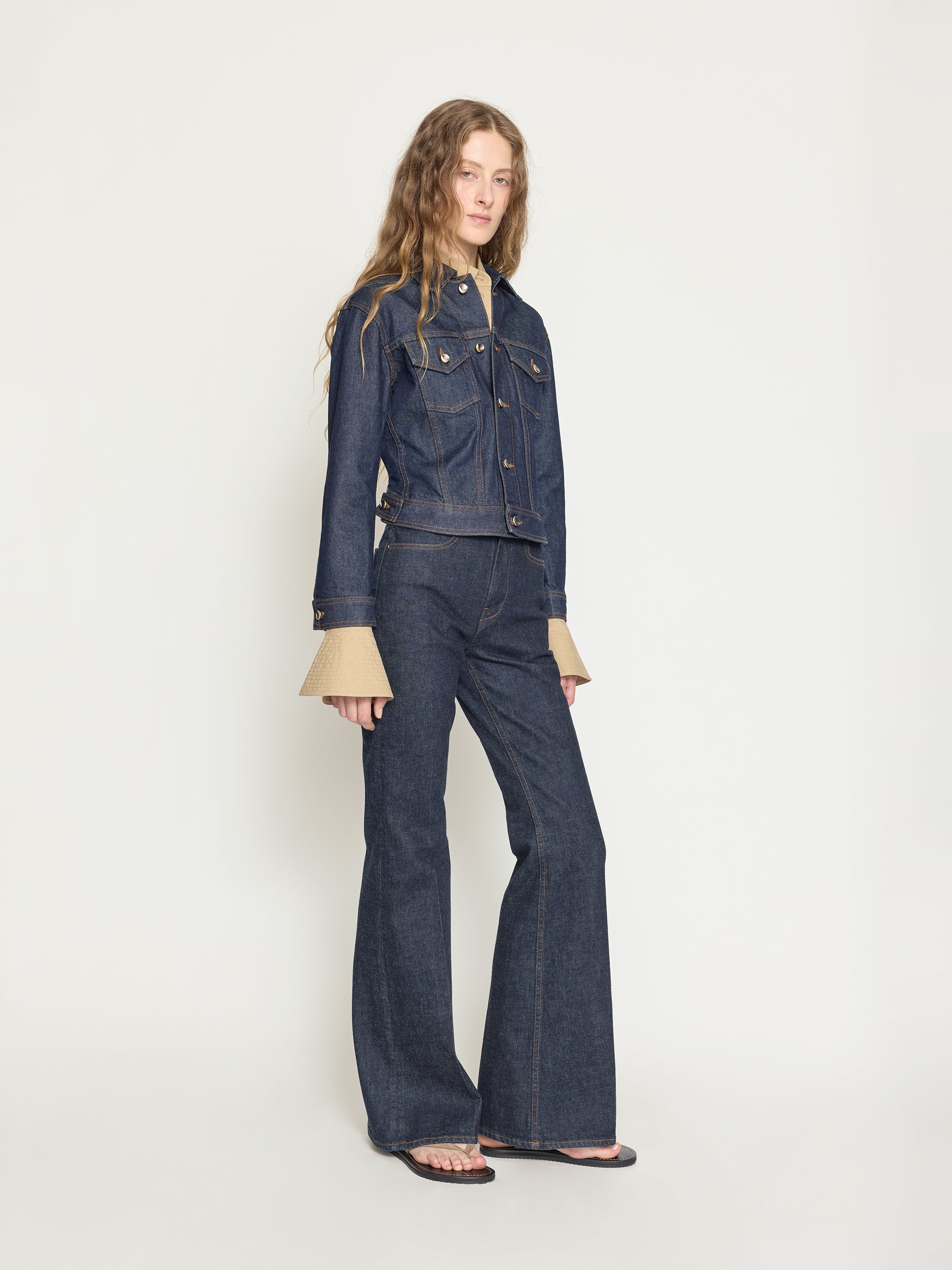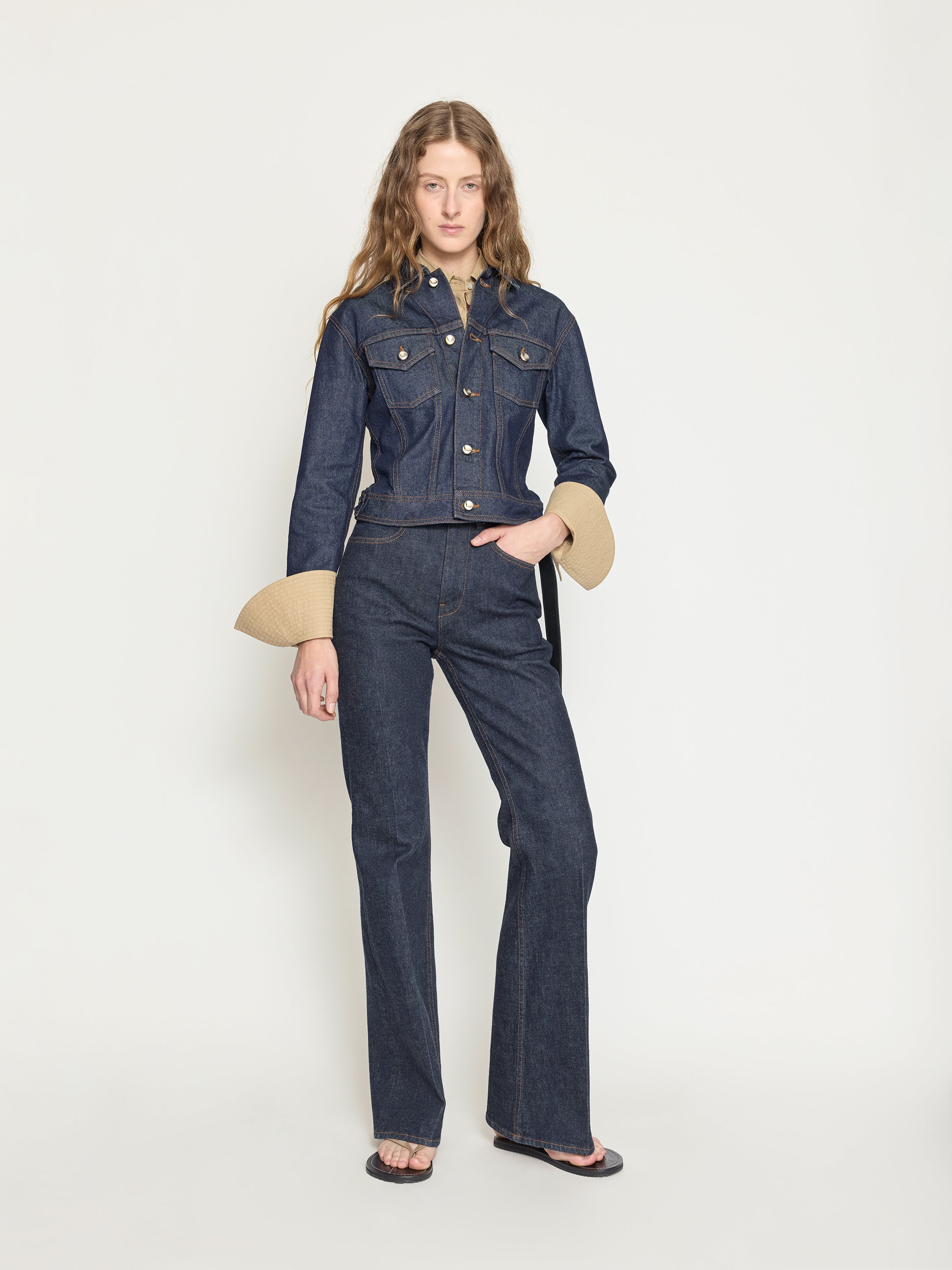 A shrunken denim jacket with a sculptural kick-back hem that warps the classic silhouette - sharp, compact, and unexpected. Designed to break in gently, softening with every wear.