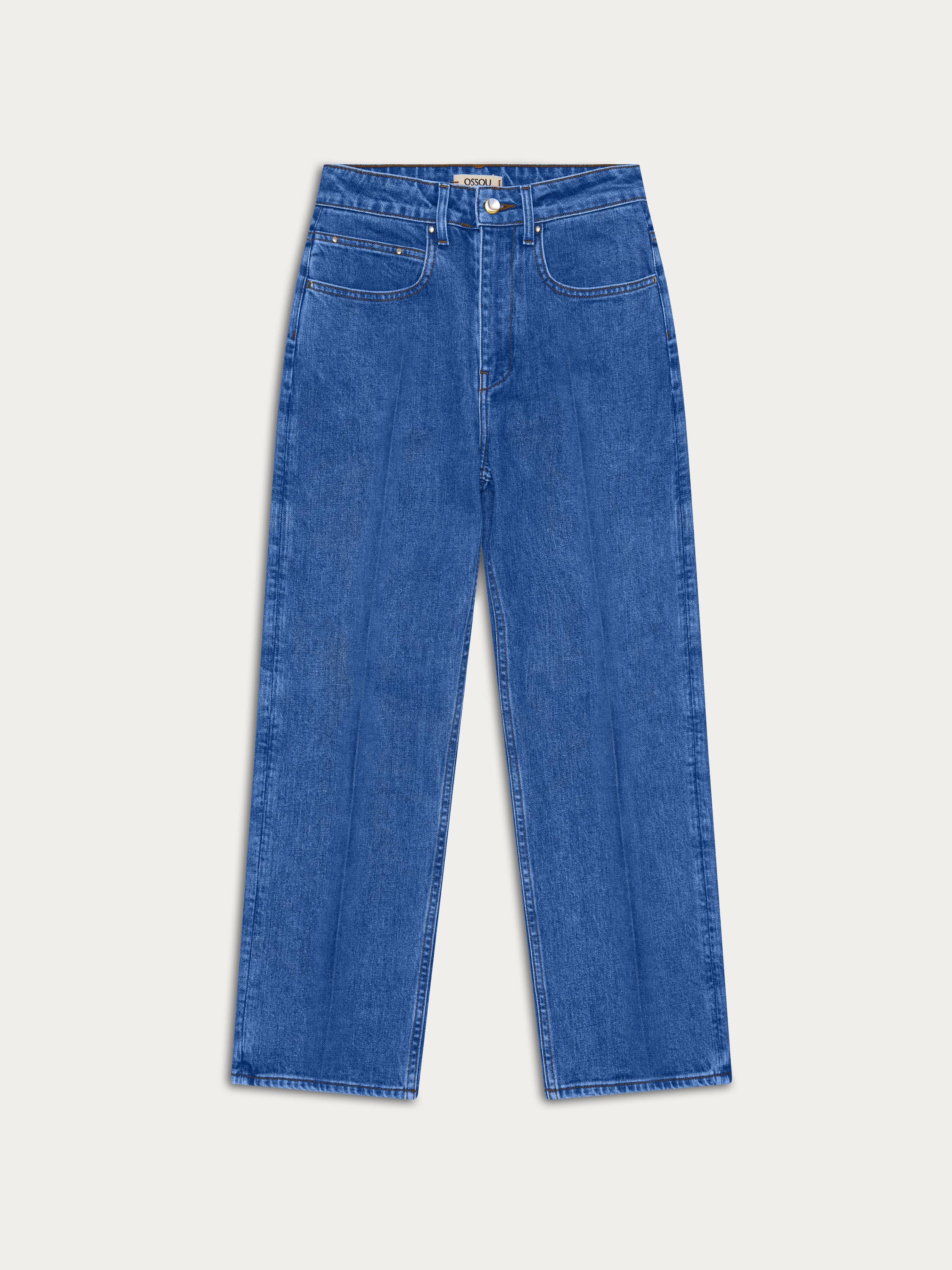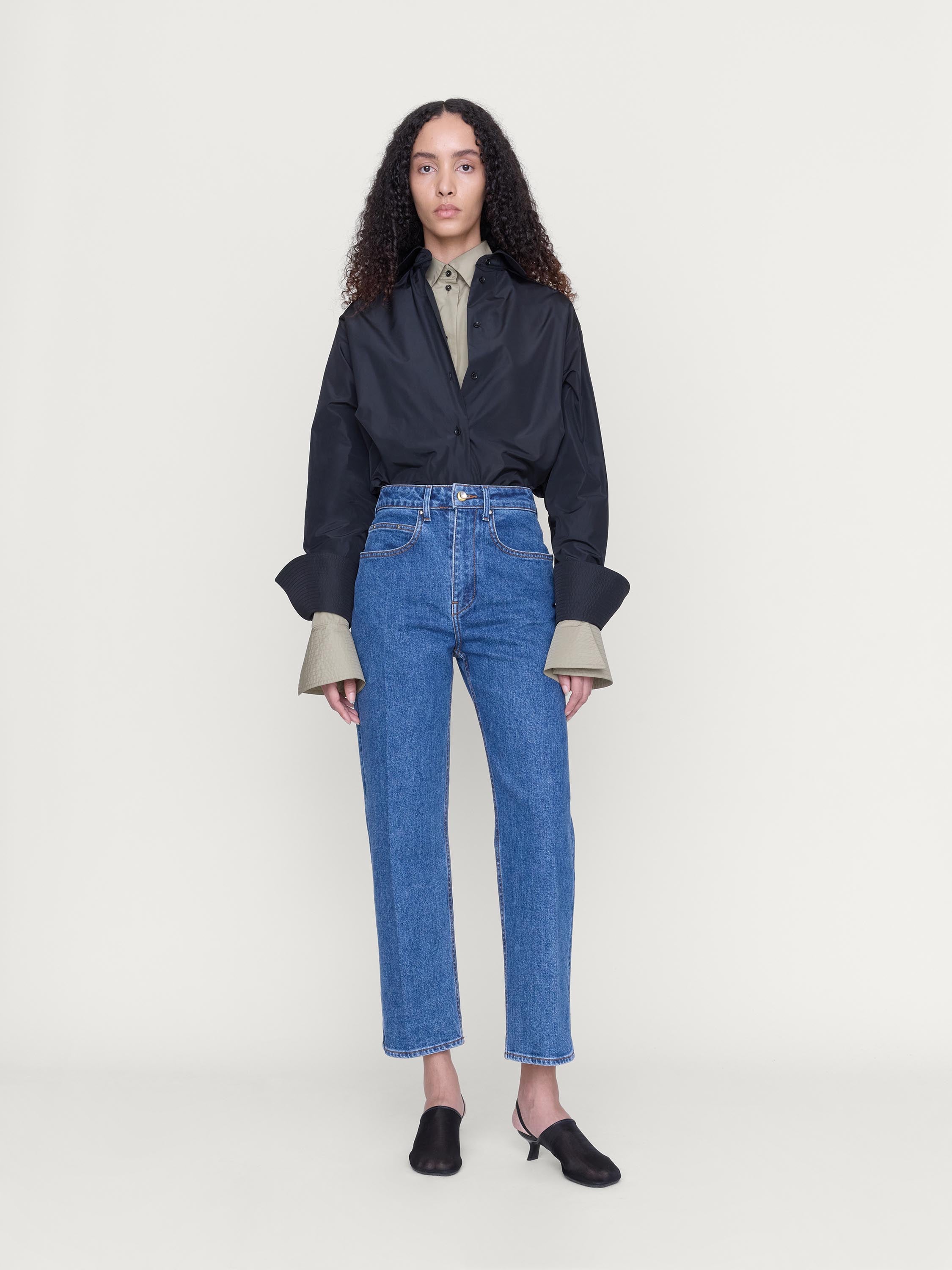 A high-rise straight-leg jean with a 27" cropped inseam. Tailored to the body and designed to break in gently, softening with every wear.
