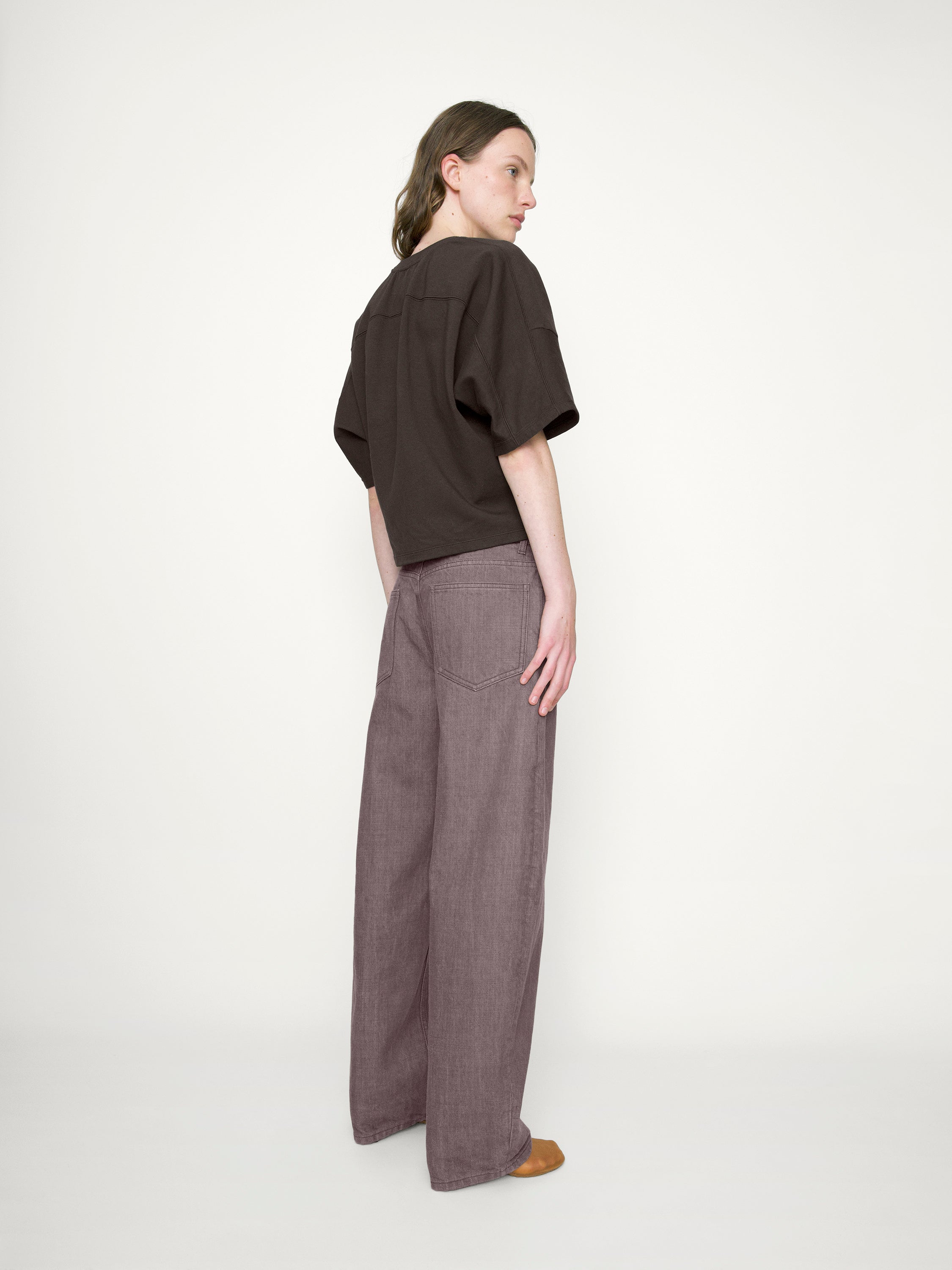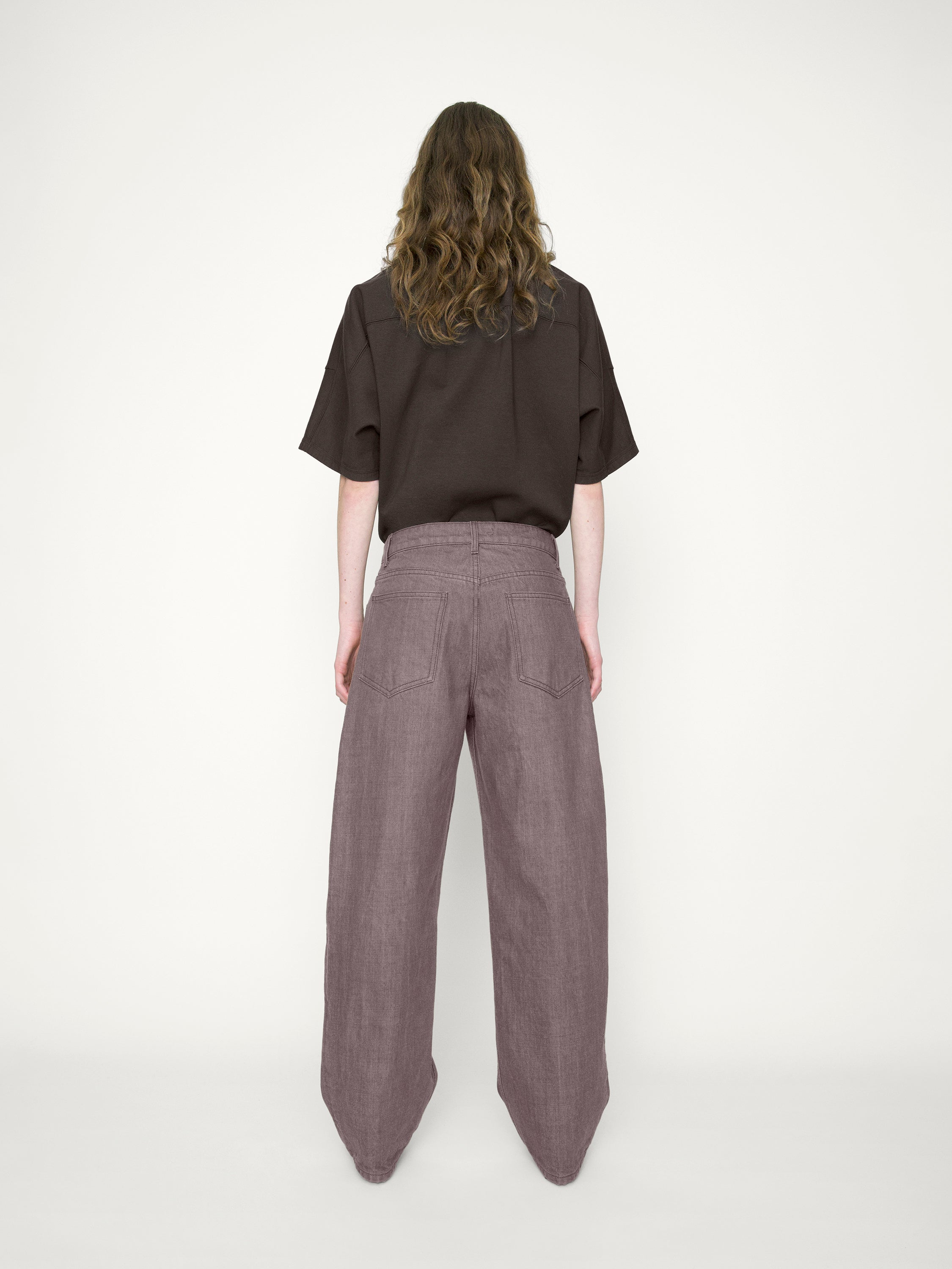 A low-rise jean, relaxed at the hip with a subtly bowed leg that curves through the knee before falling straight. Designed to break in gently, softening with every wear.