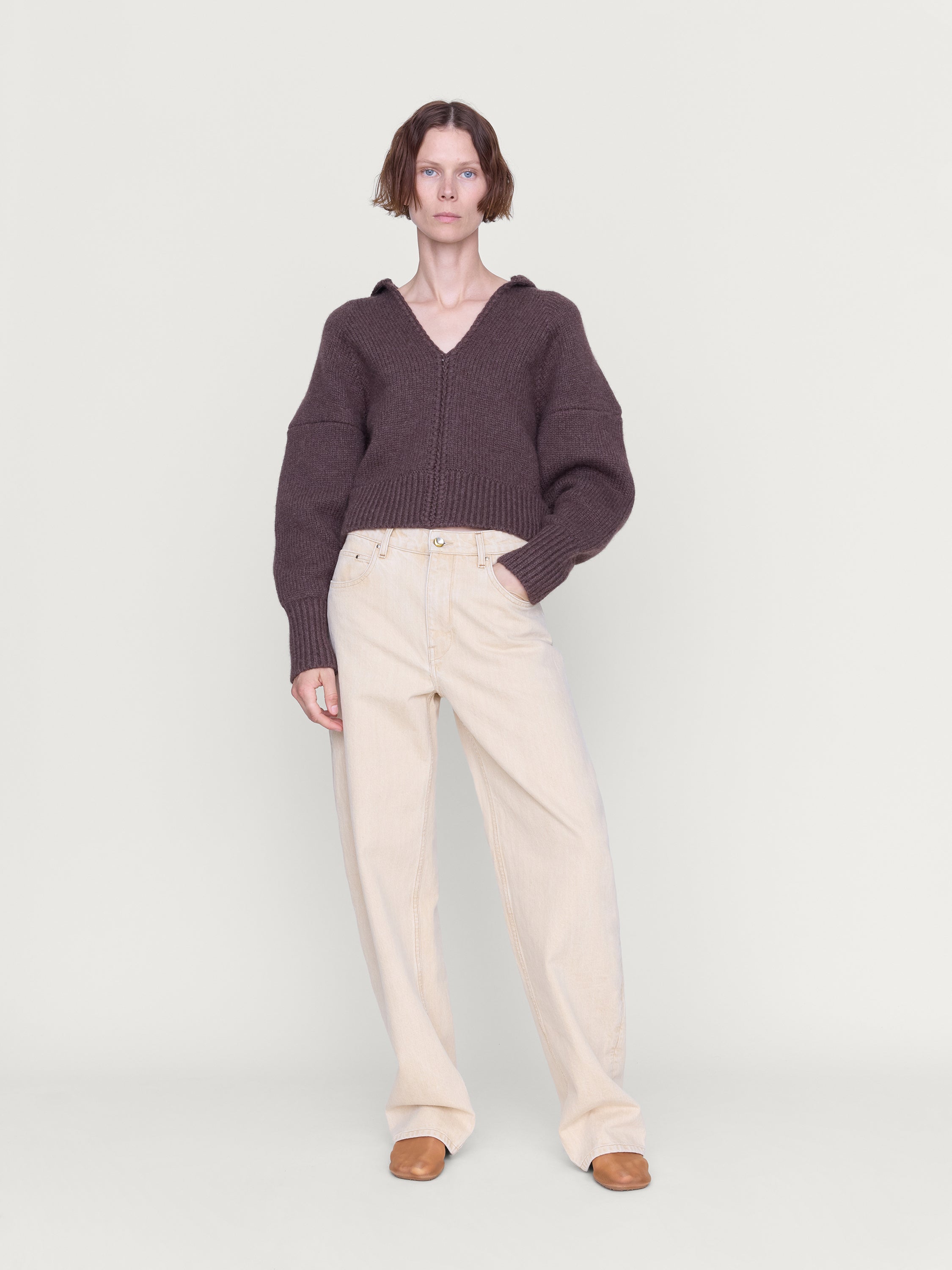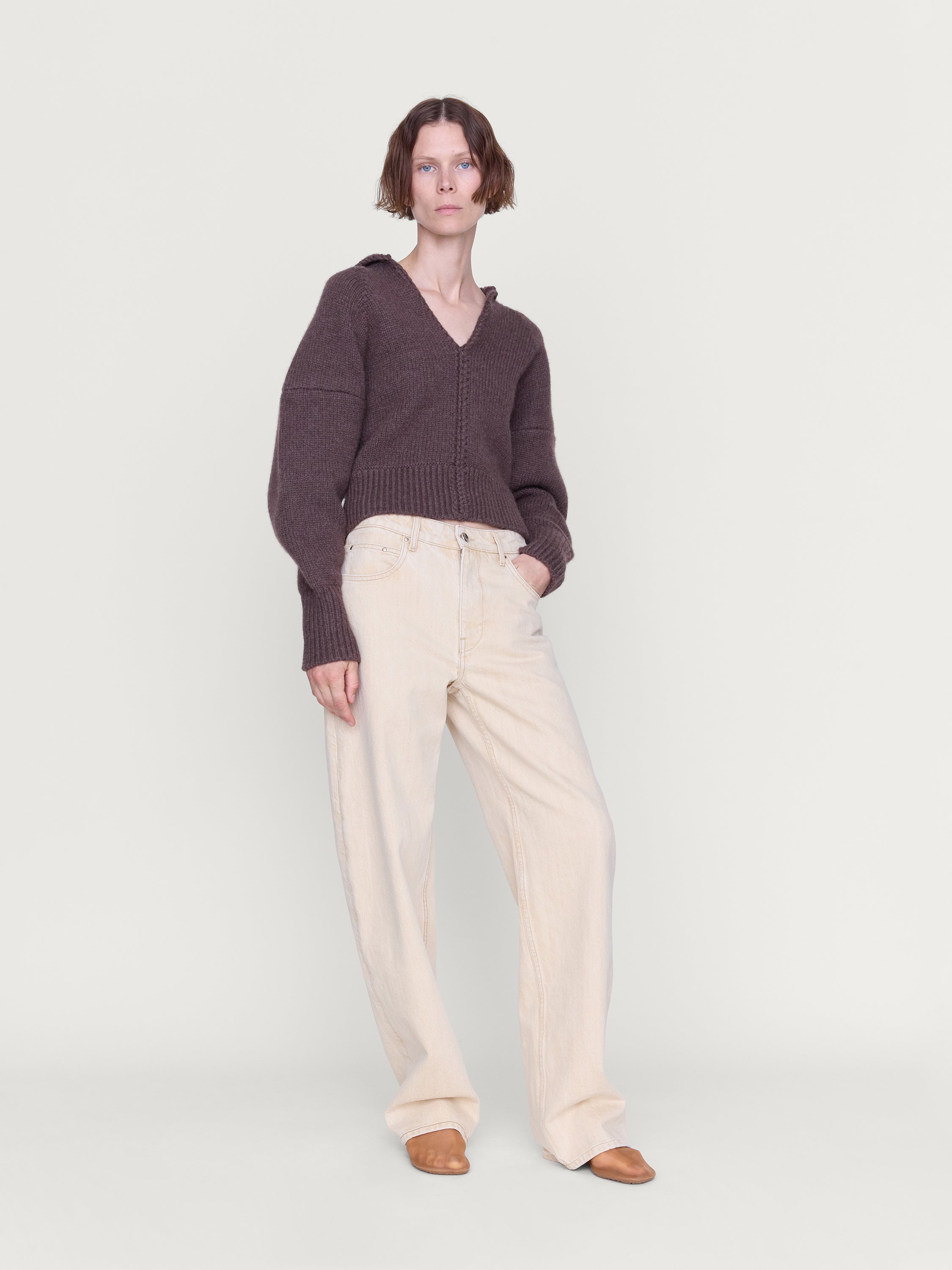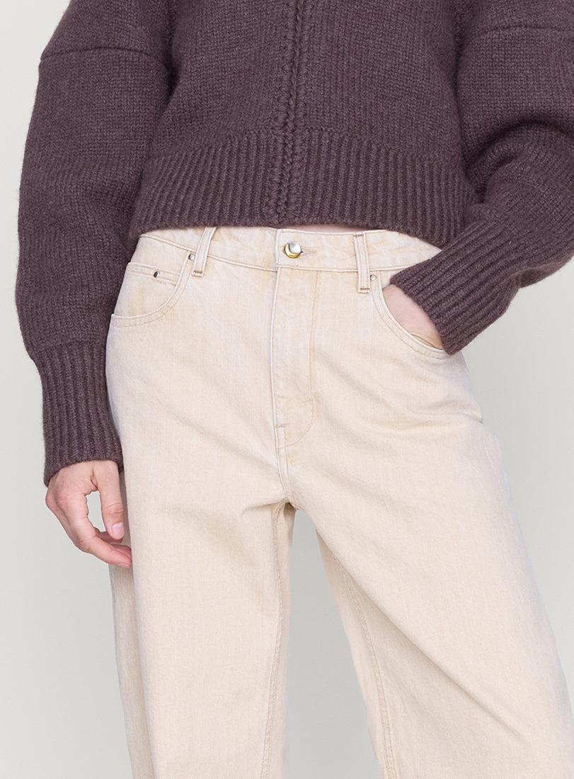 A low-rise jean, relaxed at the hip with a subtly bowed leg that curves through the knee before falling straight. Designed to break in gently, softening with every wear.